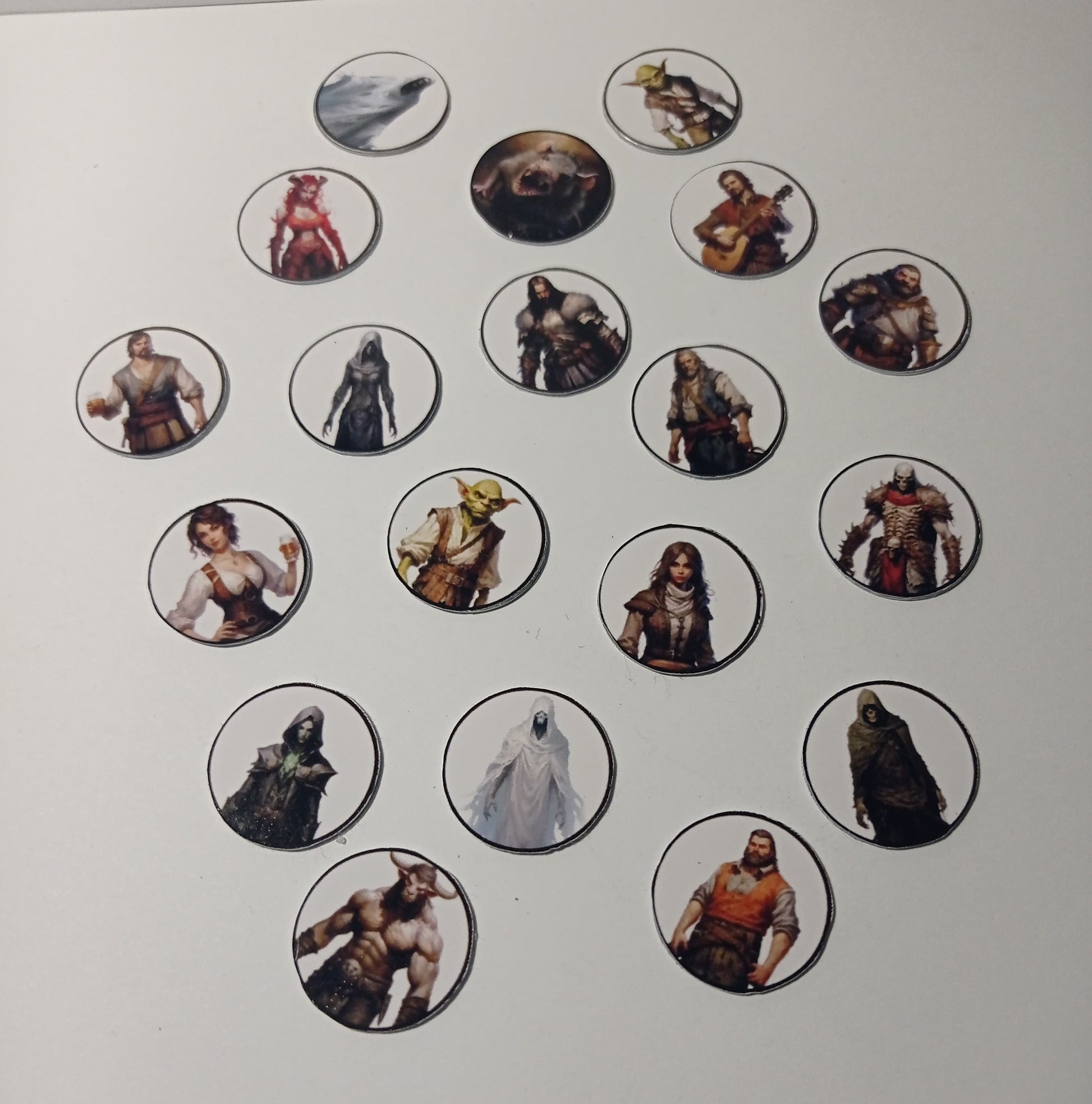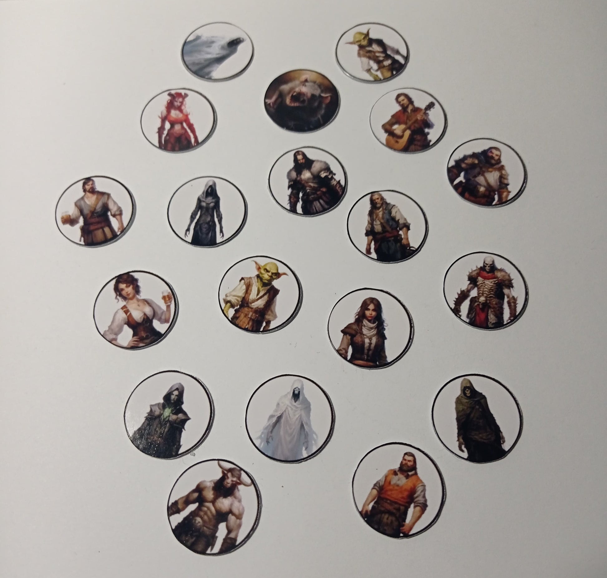 Tokenların arka yüzünde sade bir kurukafa ikonu bulunur – bu da onları düşmanları göstermek için mükemmel kılar. Ön yüzlerinde ise farklı yaratık ve karakter illüstrasyonları yer alır.