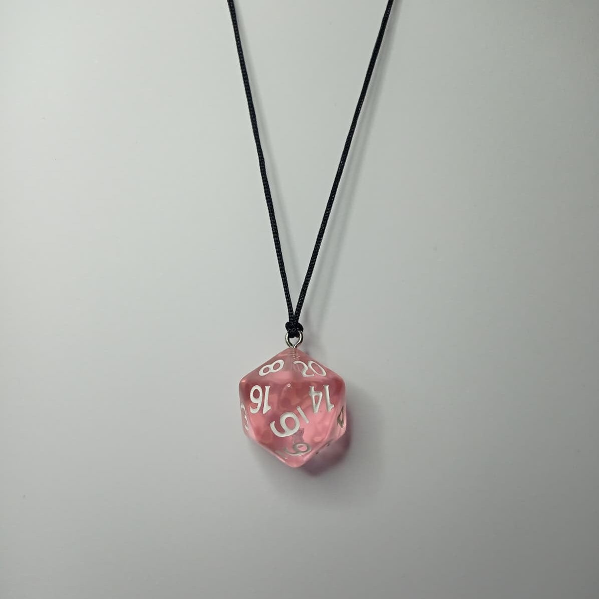 pembe d20 zar kolye, pink d20 dice necklace, pembe d20 kolye, dnd kolye, frp kolye, rpg takı, masaüstü oyun kolye, fantasy jewelry, rol yapma oyunu kolye, dnd hediye, frp hediye, oyun koleksiyon aksesuarı, D20 takı, mistik kolye, tabletop game accessory.