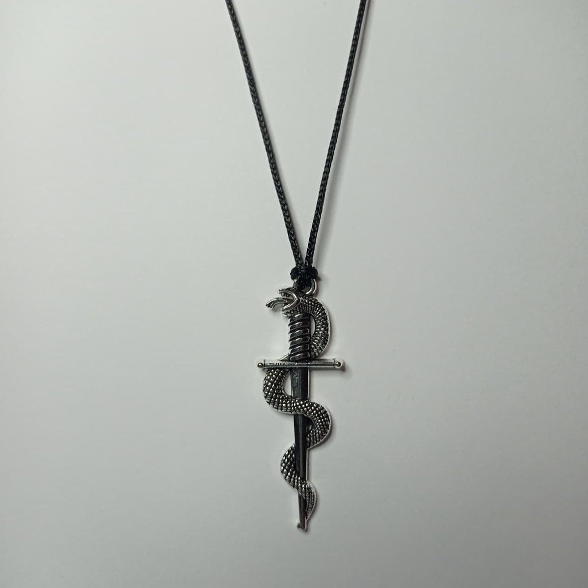 serpent sword kolye, serpent sword necklace, yılan sarmalı kılıç kolye, dnd kolye, frp kolye, tabletop game accessory, masaüstü oyun kolye, rol yapma oyunu takısı, fantasy game necklace, dnd hediye, frp hediye, oyun koleksiyon aksesuarı, mini serpent sword kolye, RPG kolye, yılanlı kılıç takı.