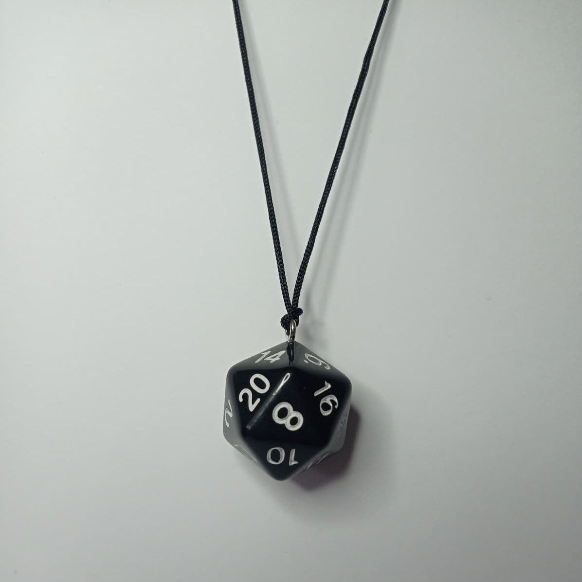 siyah d20 kolye, black d20 dice necklace, siyah d20 zar kolye, dnd kolye, frp kolye, rpg takı, masaüstü oyun kolye, fantasy jewelry, rol yapma oyunu kolye, dnd hediye, frp hediye, oyun koleksiyon aksesuarı, D20 takı, mistik kolye, tabletop game accessory.